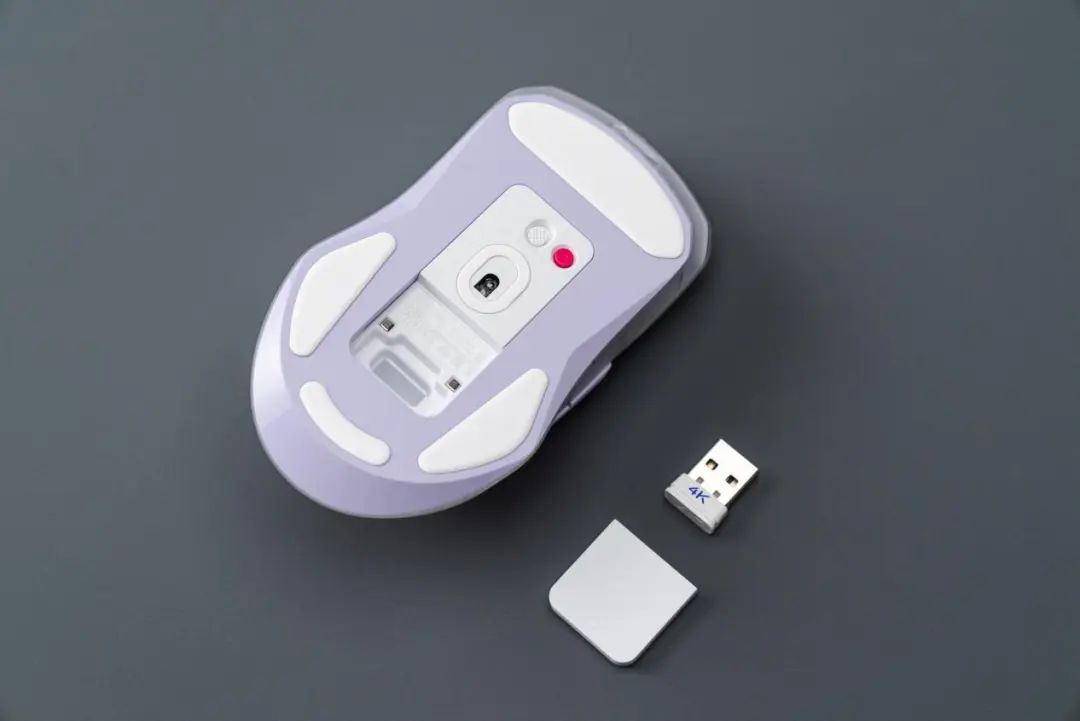 鼠标的底部配备了大面积的PTFE特氟龙脚垫,配件还配备了防滑脚贴的配件,确保操作顺畅。为了存放2.4GHz无线接收器,鼠标底部提供了一个带磁性盖的储物箱以避免丢失。此外,雷柏VT9PRO双速双模版还采用USB Type-C接口,随机附送一根1.8米长的轻质编织线,以确保即使在有线连接模式下也能减少电线的束缚感。